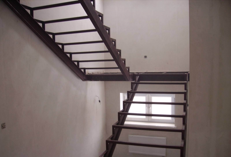Такой каркас металлической лестницы требует дополнительной отделки снизу и с торцов.