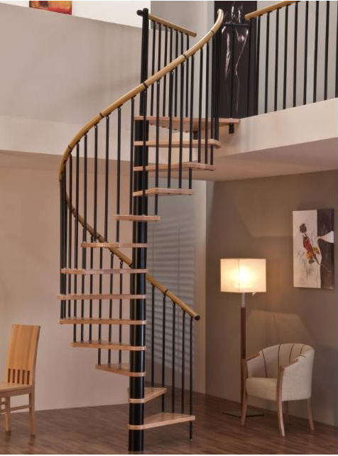 Ступени лестницы выполнены из массива бука, покрыты бесцветным лаком. Металлические элементы доступны в чёрном или серебристом цвете (порошковая покраска)