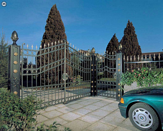 Кованые ворота, созданные из прочной стали, станут исполнять роль надёжного защитника Ваших владений, и при этом не будут скрывать красоту ландшафтного дизайна.