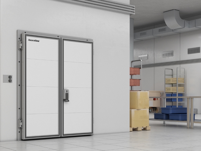 Среднетемпературные и низкотемпературные распашные двустворчатые двери IsoDoor IDH2 предназначены для организации входных групп холодильных и морозильных камер на складах, в терминалах и логистических центрах, на предприятиях пищевой промышленности, торговли и пищевого ретейла.