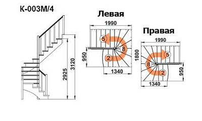 Высота от пола нижнего этажа до пола верхнего этажа: 3120 ммВысота лестницы: 2925 мм