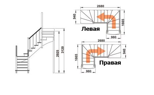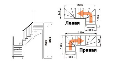 Высота лестницы: 2925 мм