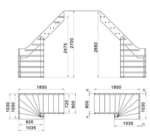 Высота от пола нижнего этажа до пола верхнего этажа: 2700 -2925 мм
