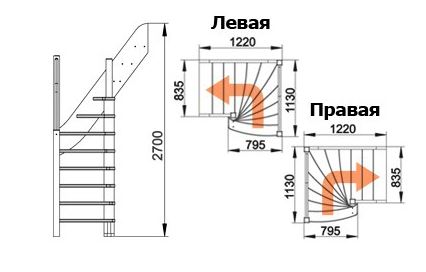 Высота от пола нижнего этажа до пола верхнего этажа: 2700 мм